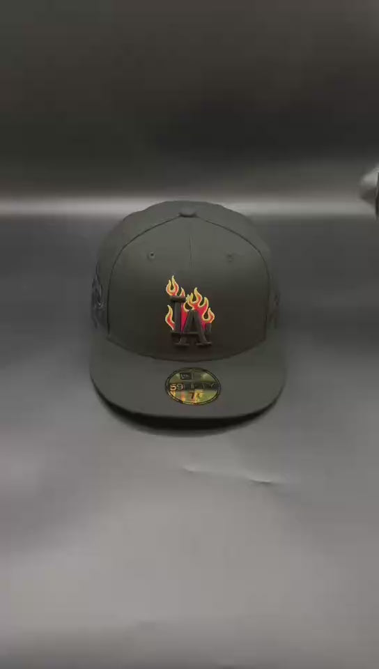 Bring the heat in all-black style with the All Black Red Los Angeles Dodgers Flames 40th Anniversary Dodger Stadium 59FIFTY Fitted Cap by New Era. Featuring a sleek all-black crown with bold red flame accents, the iconic LA logo on the front, and the detailed Dodger Stadium 40th Anniversary commemorative side patch, this fitted cap delivers fiery energy with a modern, monochrome edge.