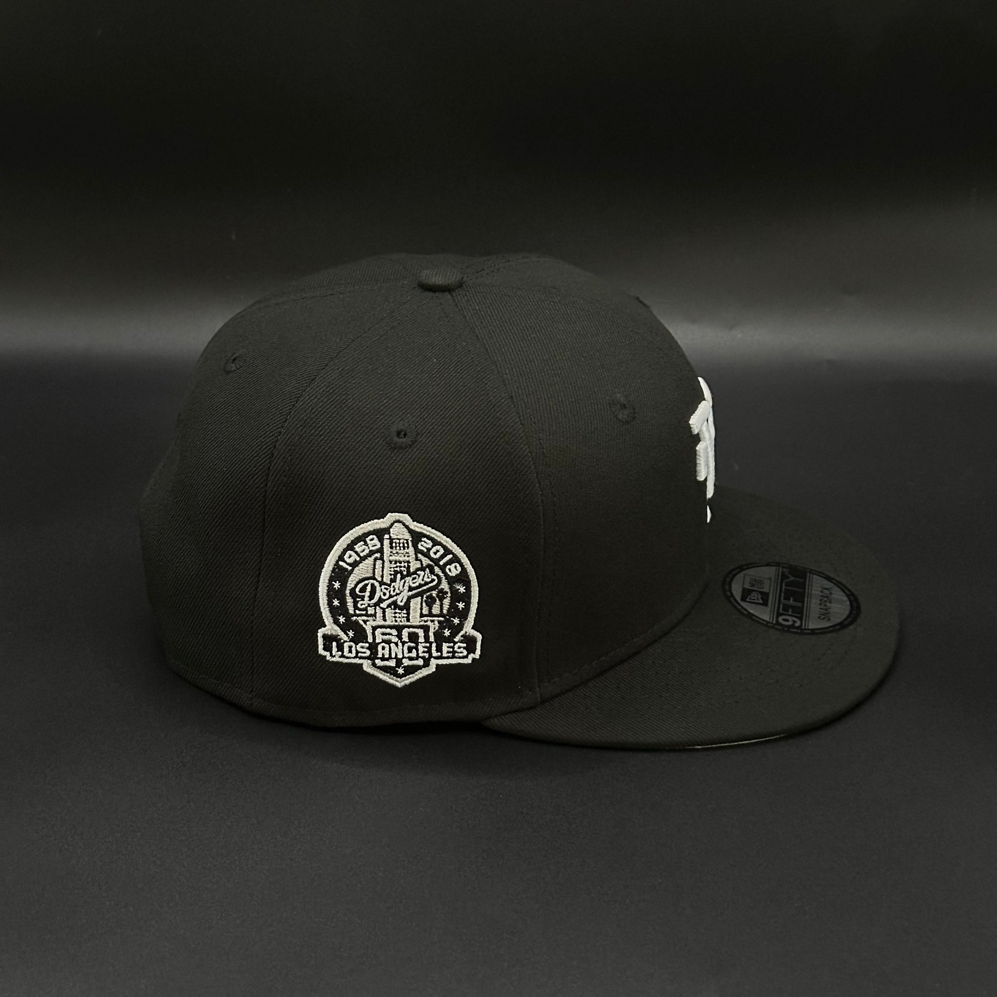 Stand out with a bold twist on tradition in this All Black Upside Down Los Angeles Dodgers 60th Anniversary 9FIFTY Snapback by New Era. Featuring the unique upside down “LA” logo, commemorative 60th Anniversary side patch, and adjustable snapback fit — perfect for street style and team pride.