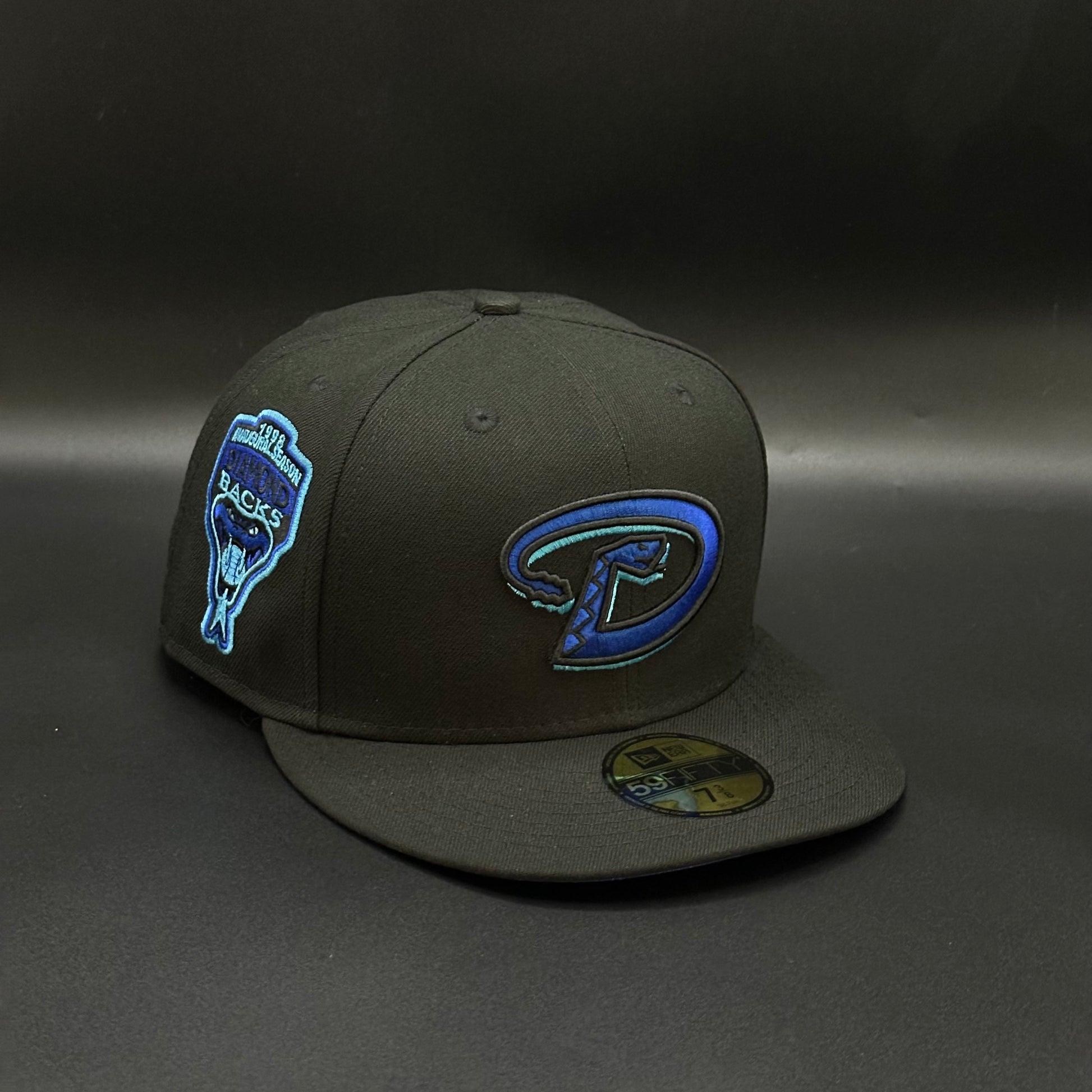 Celebrate the beginning of Diamondbacks history with the Black Blue Arizona Diamondbacks 1998 Inaugural Season 59FIFTY Fitted Cap by New Era. Featuring a sleek black crown with a contrasting blue visor, the iconic Diamondbacks “A” logo on the front, and the detailed 1998 Inaugural Season commemorative side patch, this fitted cap is a must-have for collectors and fans of Arizona baseball.