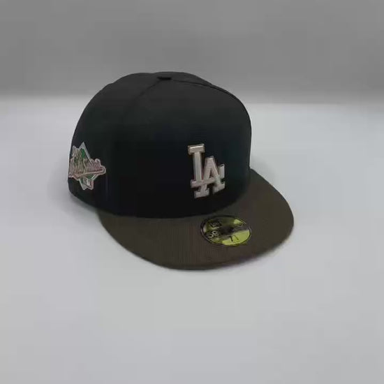 Celebrate the Dodgers’ 1988 championship run with the Black Brown LA Dodgers 1988 World Series MLB Fitted Cap by New Era. Designed with a black crown and brown visor, this cap features the iconic LA logo on the front and a detailed 1988 World Series commemorative side patch, making it a must-have for collectors and fans alike.