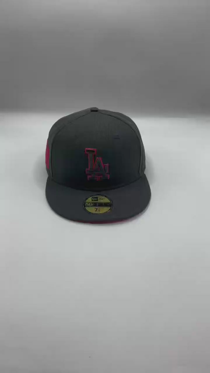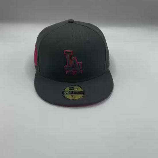 Celebrate the Dodgers’ 2020 championship with the Black Red LA Dodgers 59FIFTY Fitted Cap by New Era. Featuring a black crown with a red visor, the classic LA logo on the front, and the 2020 World Series side patch, this fitted blends modern flair with team pride.