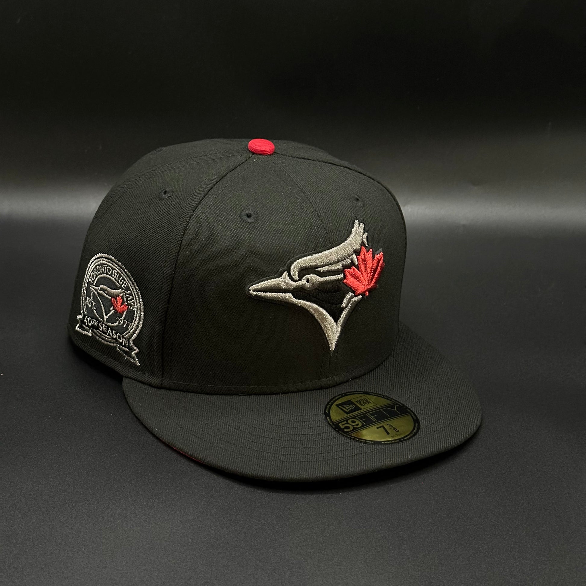 Celebrate four decades of Blue Jays baseball with the Black Red Toronto Blue Jays 40th Season 59FIFTY Fitted Cap by New Era. Featuring a sleek black crown with bold red accents, the classic Blue Jays logo on the front, and the detailed 40th Season commemorative side patch, this fitted cap is a standout tribute to Toronto’s rich franchise history.