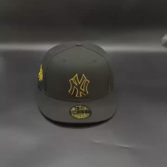 - Black crown with yellow visor and white Yankees embroidery