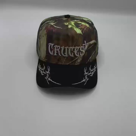Faith and culture stitched into camo. The Cruces Camo Crosses snapback blends rugged streetwear with refined detail, featuring a bold camouflage crown layered with cross embroidery and premium finishing.