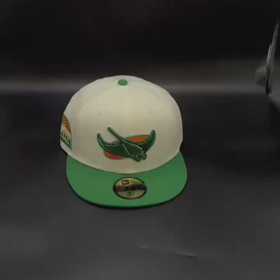 Celebrate the Devil Rays’ roots with this Chrome Green Tampa Bay Devil Rays Tropicana Field 59FIFTY Fitted Cap by New Era. Featuring the iconic Devil Rays logo and a detailed Tropicana Field side patch, this fitted cap is a bold tribute to Tampa Bay baseball history.