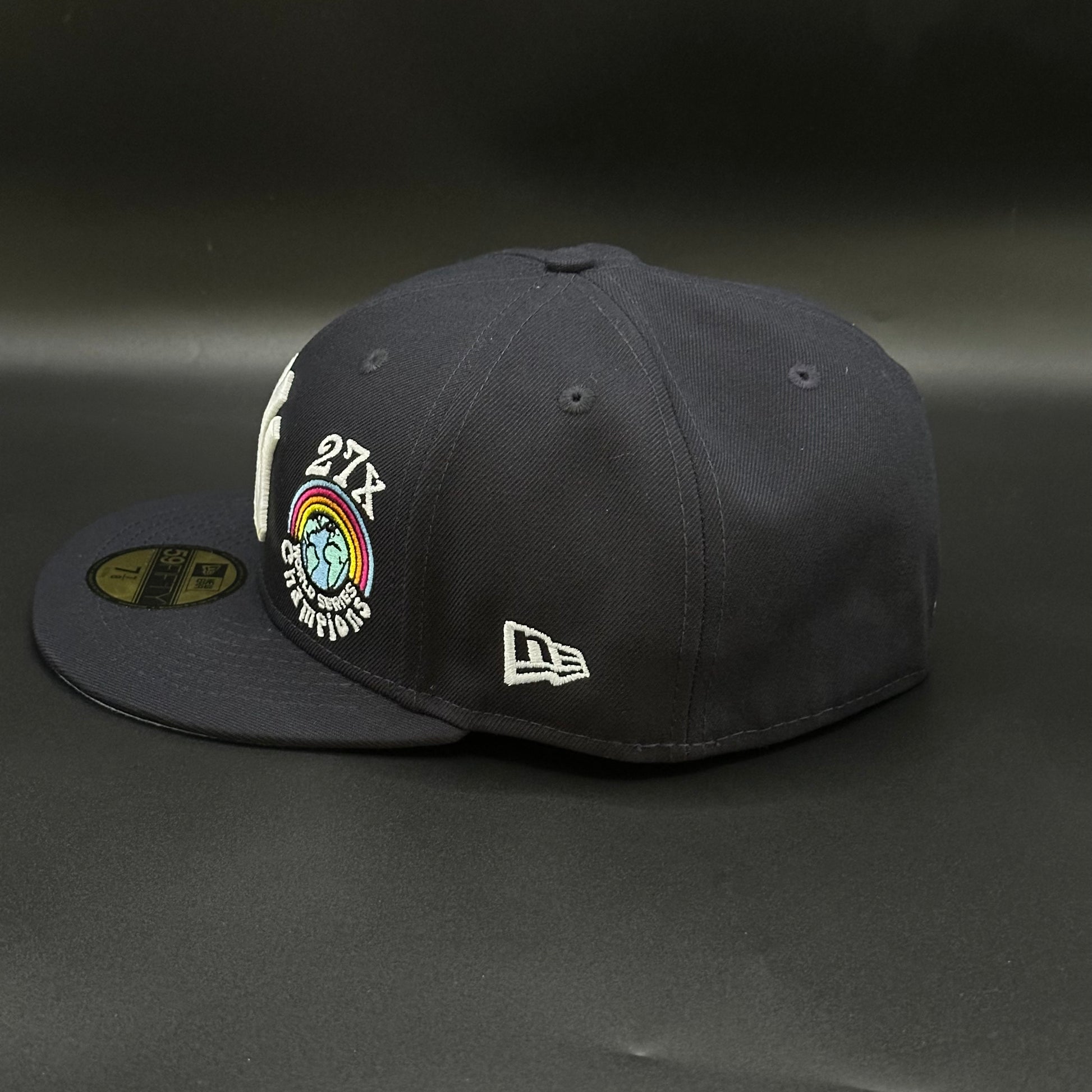 - Navy crown with white Yankees embroidery