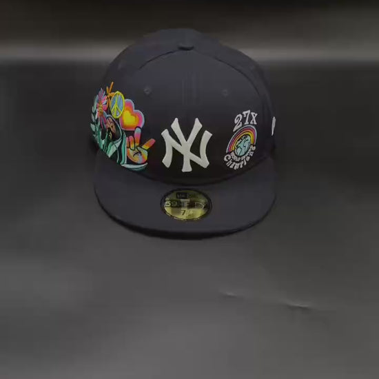 Celebrate the Yankees’ historic success with a modern twist in this Navy New York Yankees 27x Peace Sign 59FIFTY Fitted Cap by New Era. Featuring the iconic NY logo, a unique peace sign design, and a 27x World Series championships patch, this fitted blends legendary heritage with streetwear flair.