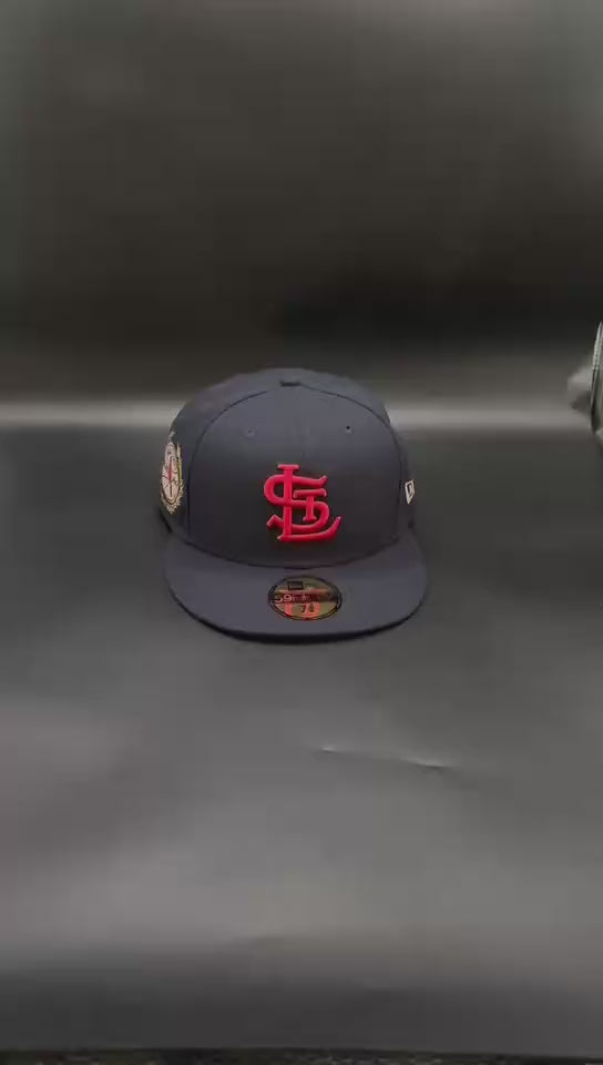 Celebrate a historic championship season with the Navy Red St. Louis Cardinals 1942 World Series 59FIFTY Fitted Cap by New Era. Featuring a classic navy crown with a bold red visor, the iconic STL logo on the front, and the detailed 1942 World Series commemorative side patch, this fitted is a timeless tribute to the Cardinals’ storied legacy.