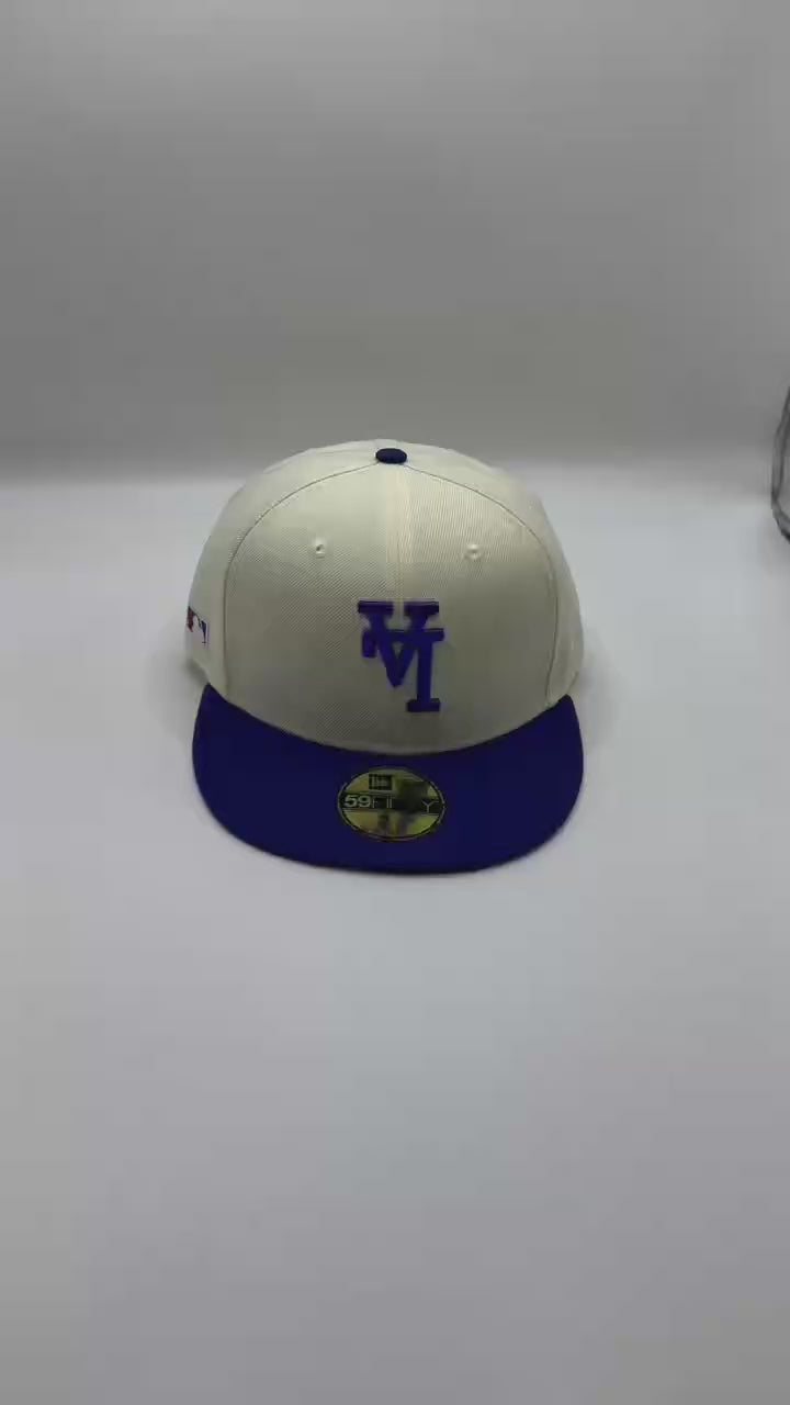 Add a unique twist to your collection with the White Blue Dodgers Upside Down Side Batty 59FIFTY Fitted Cap by New Era. Featuring a crisp white crown with a bold blue visor, the iconic LA logo flipped upside down on the front, and the classic side batterman logo, this fitted delivers a playful yet premium take on Dodgers style.